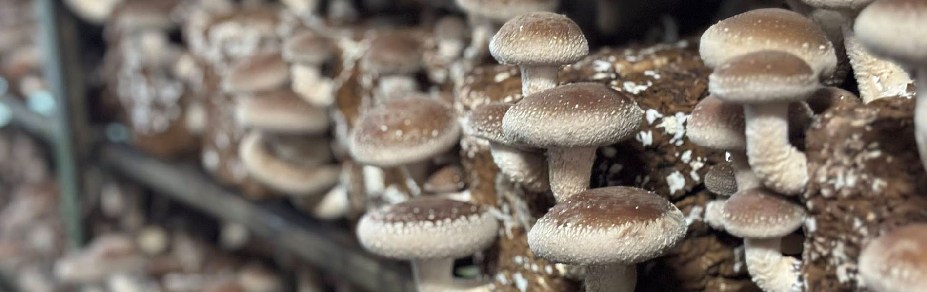 しいたけの生産と販売に関する作業です。温度管理されているハウス内で菌床しいたけの栽培・収穫を行います。